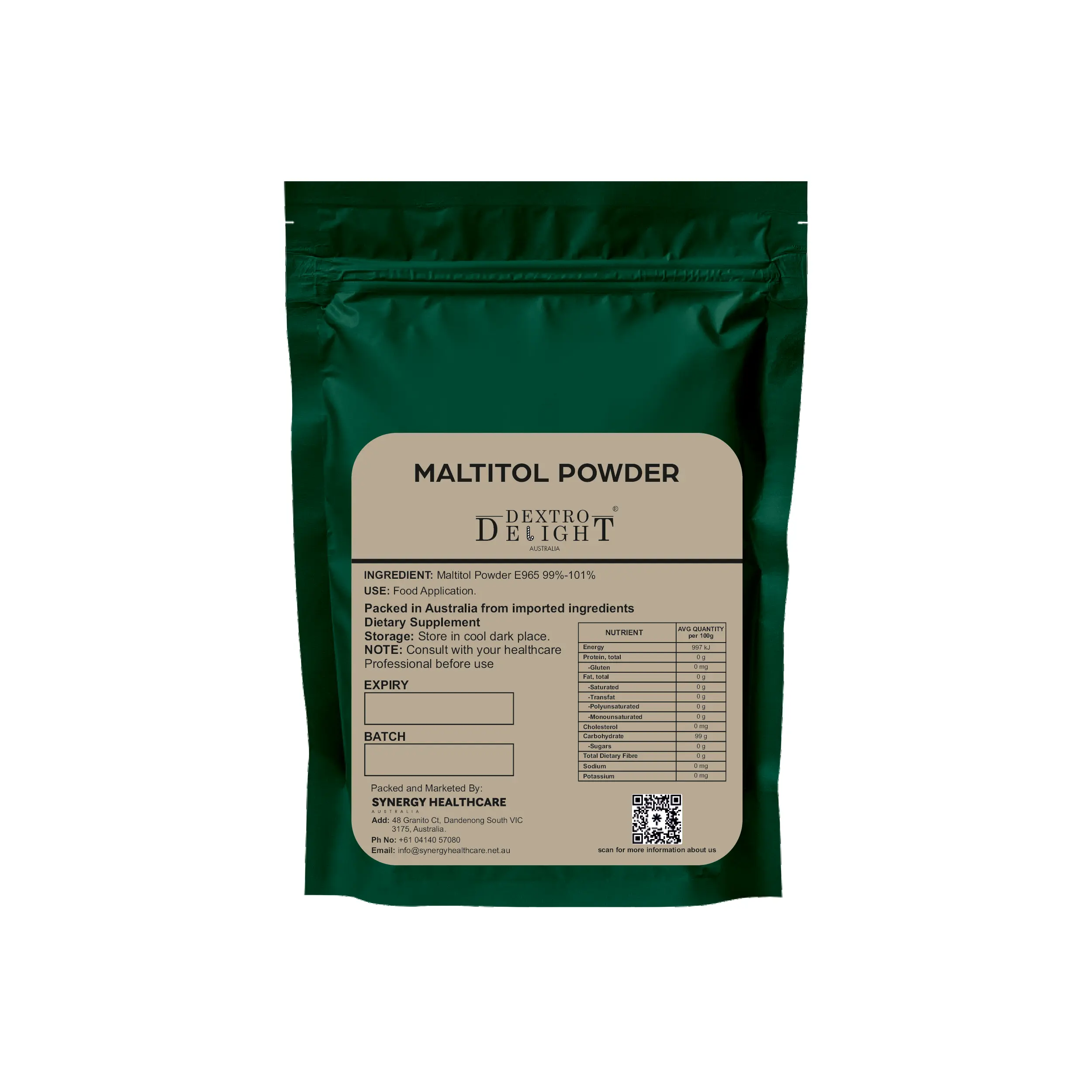 Sourced from starch (typically corn or wheat), Maltitol is processed into a fine, white crystalline powder with excellent thermal and chemical stability, making it ideal for cooking, baking, and extrusion.